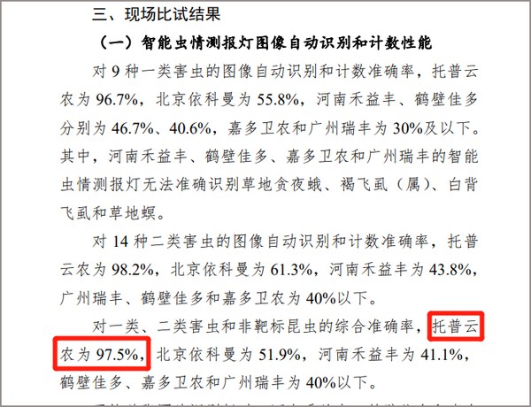 全国农技中心发布比试结果,点点电脑测报产品识别准确率达97.5%
