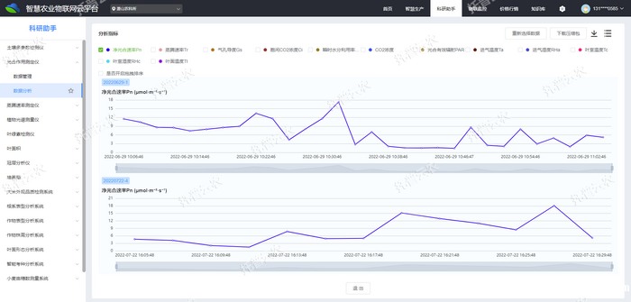 7、配备“数智农业云”平台:植物光合作用测定仪联网状态下,可手动将测量数据上传到物联网4.0云平台,用户登录账号即可查看,可在云端对实验数据进行管理和分析,支持对比分析各项光合指标,支持图表2种展示形式。