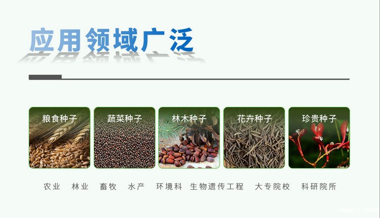 种子低温低湿储藏柜是通过创建低温低湿环境来对种子进行安全储藏的科研设备!它能够通过智能控制储藏柜内部的温度、湿度等条件,使种子长期处于低温低湿的环境中。种子低温低湿储藏柜可广泛应用于农科院及科研院校,种业企业等领域中!